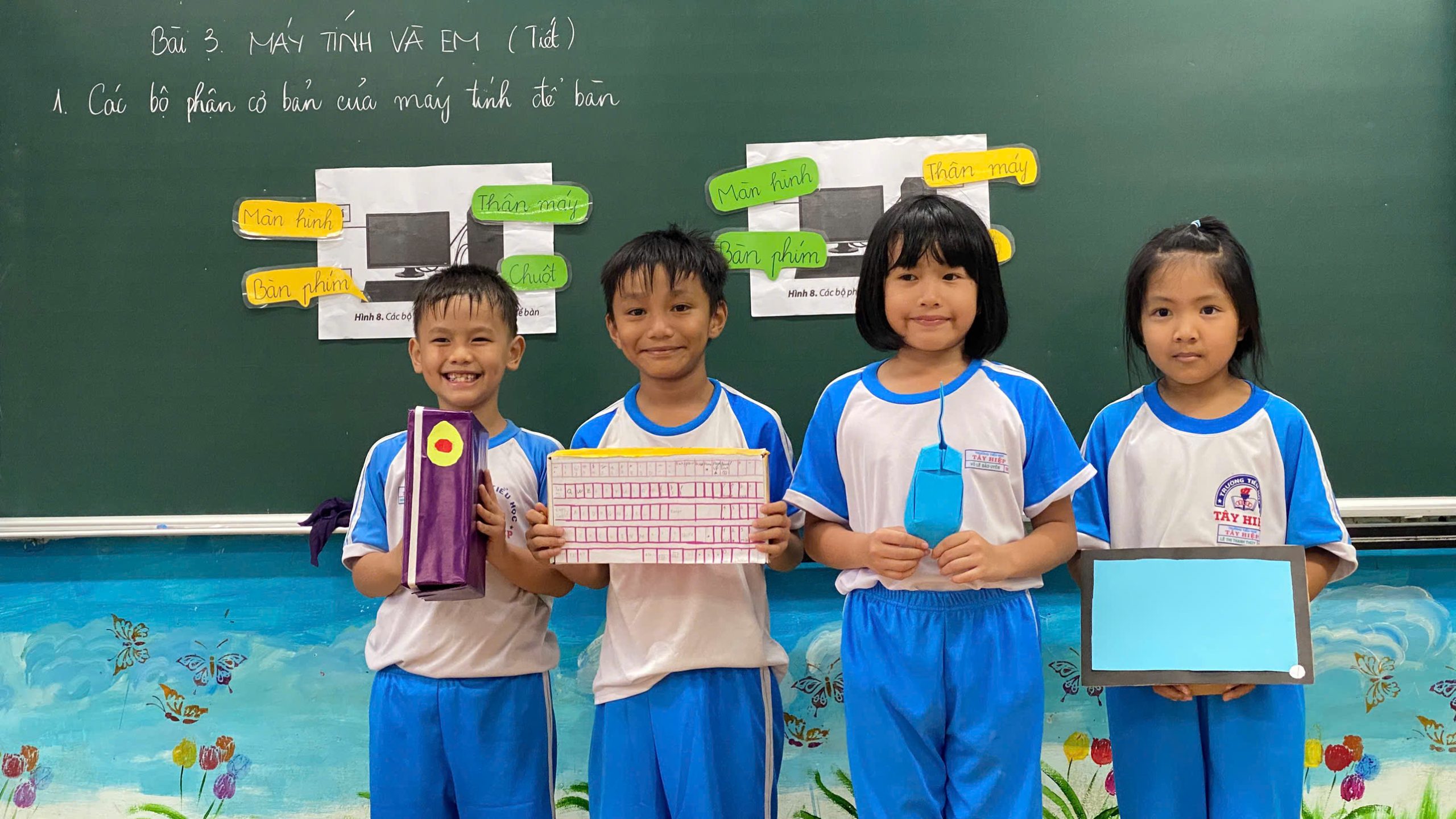 Tiết dạy không chỉ giúp học sinh nhận biết các bộ phận chính của máy tính, hiểu công dụng của từng bộ phận mà còn hướng các em đến khả năng vận dụng kiến thức vào thực tế, rèn luyện kỹ năng quan sát, hợp tác nhóm và sáng tạo – những năng lực cốt lõi trong giáo dục STEM.