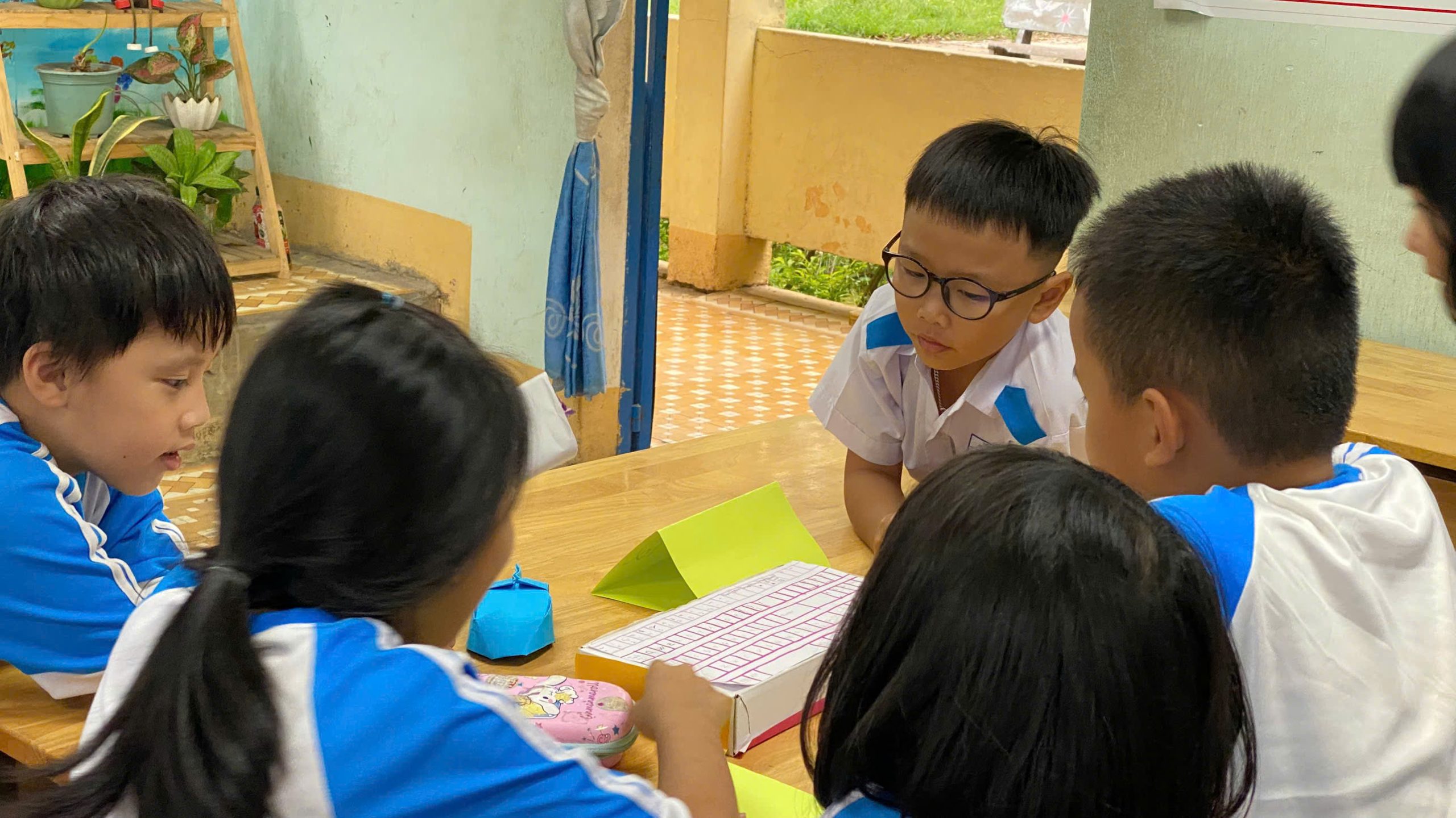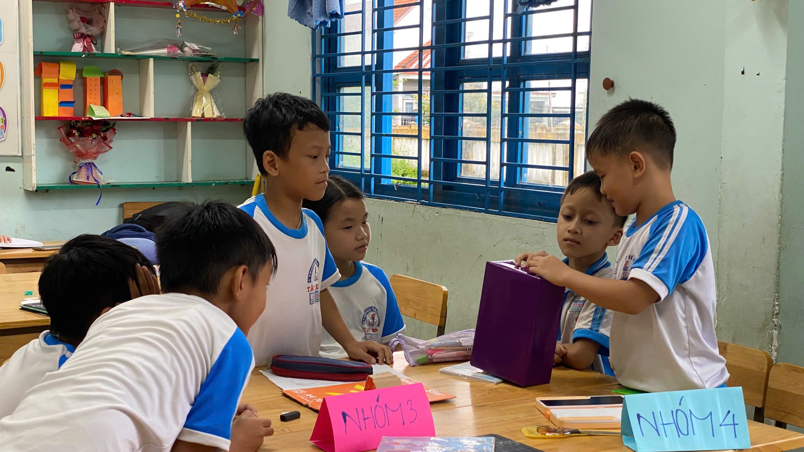 Trong tiết học, học sinh được chia thành các nhóm nhỏ và cùng nhau: