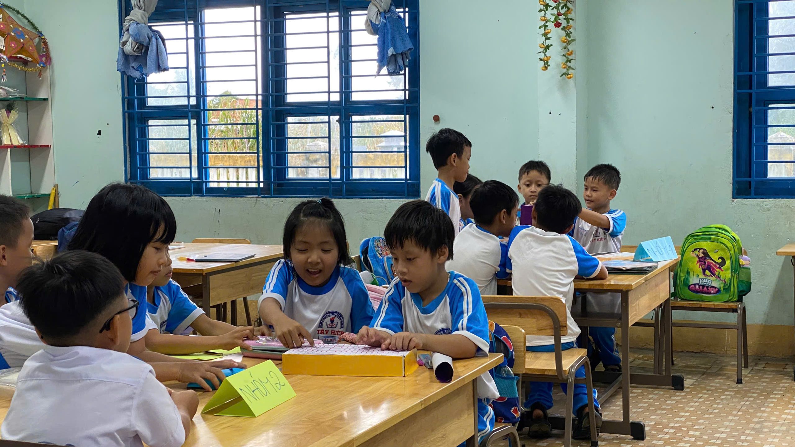 Không khí lớp học trở nên sôi nổi, học sinh hào hứng, tự tin khi được “học mà chơi – chơi mà học”.